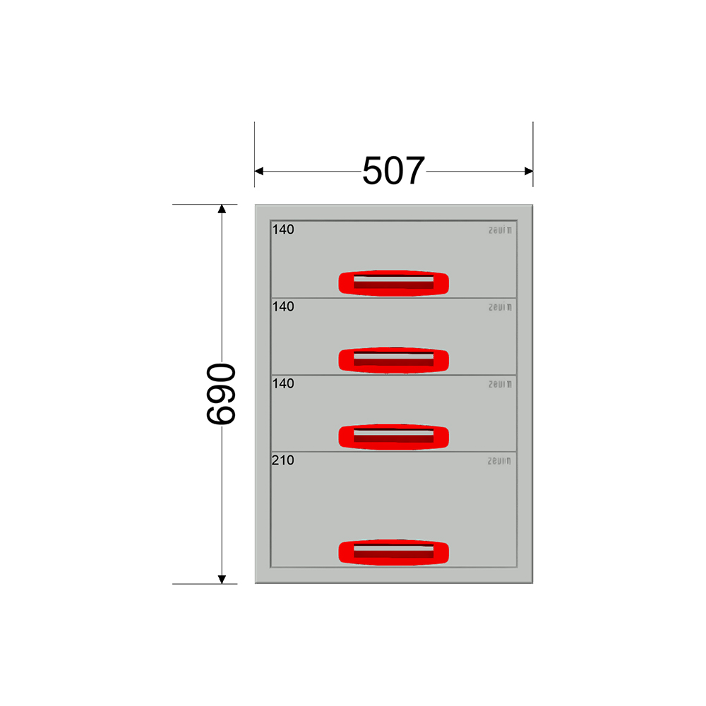 – Ladekast met 4 laden (1xH105, 1xH140, 1xH175, 1xH210 mm)