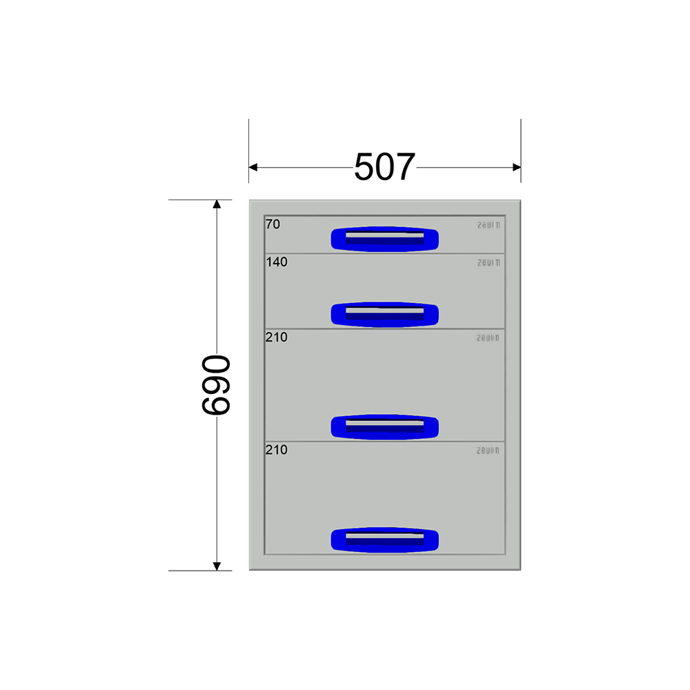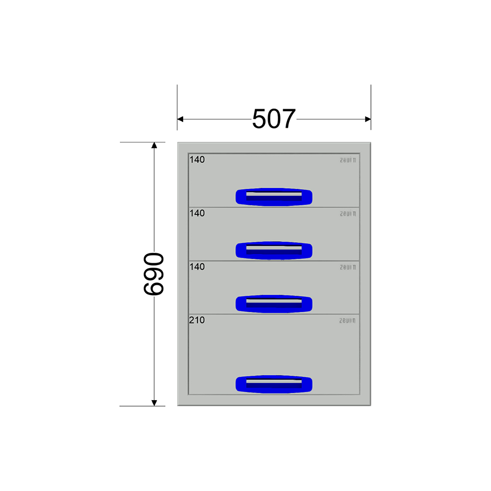 – Ladekast met 4 laden (1xH105, 1xH140, 1xH175, 1xH210 mm)