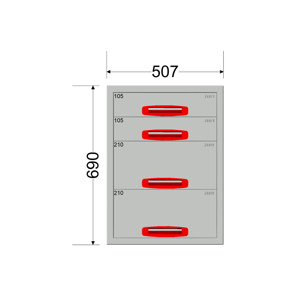 – Ladekast met 4 laden (2xH105, 2xH210 mm)