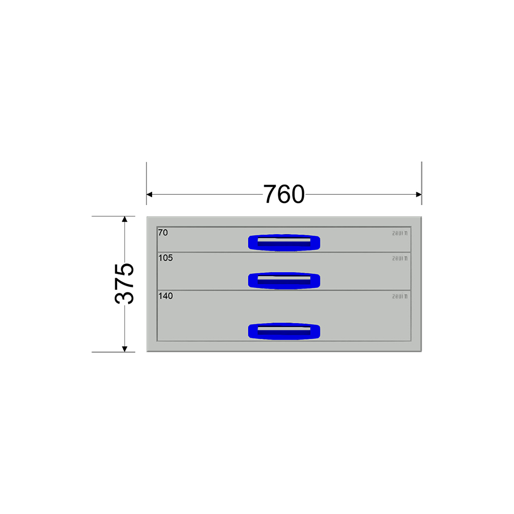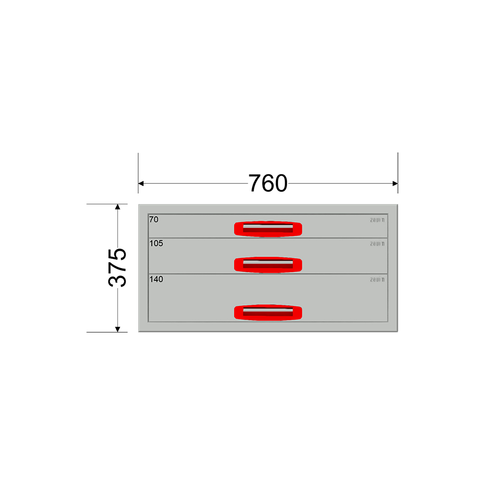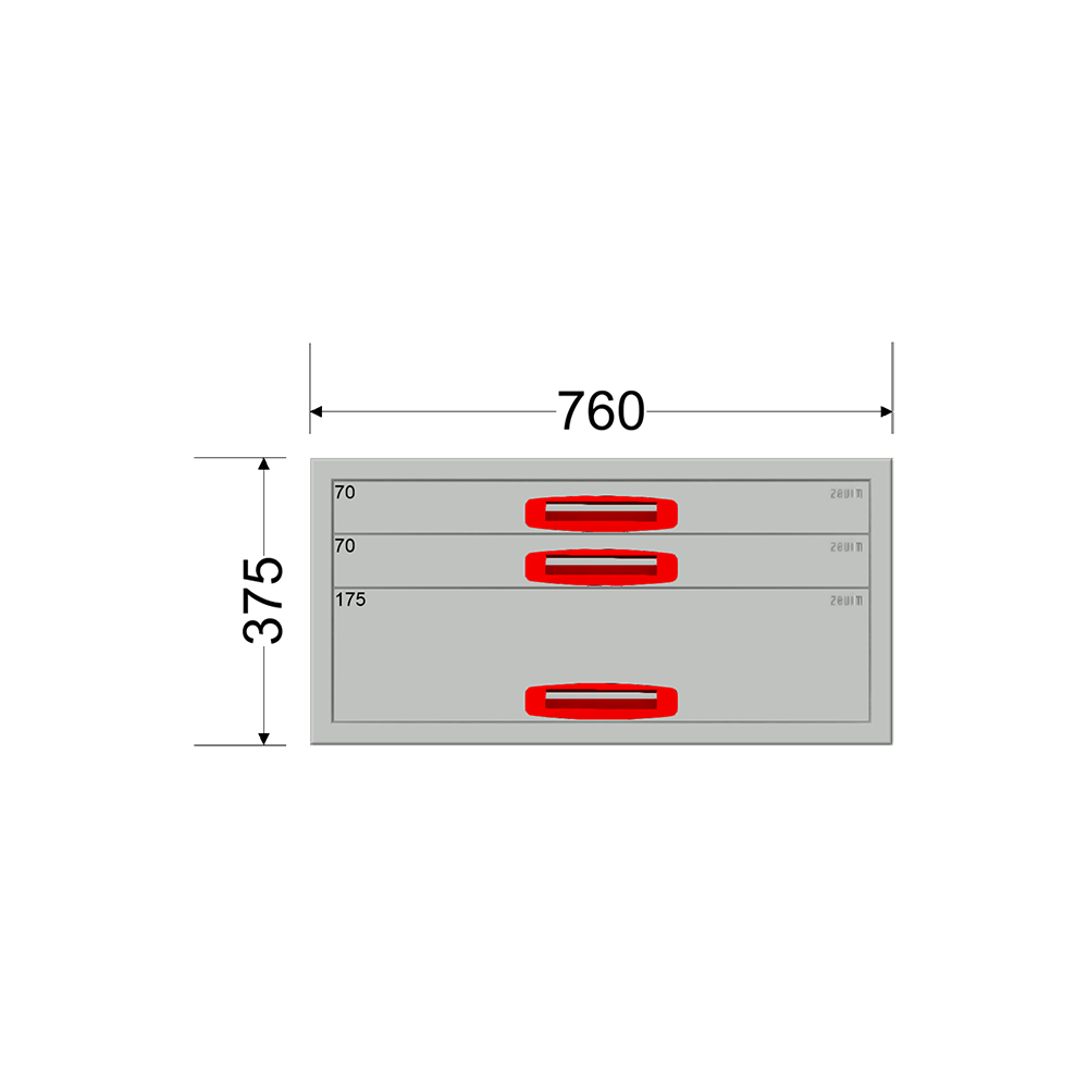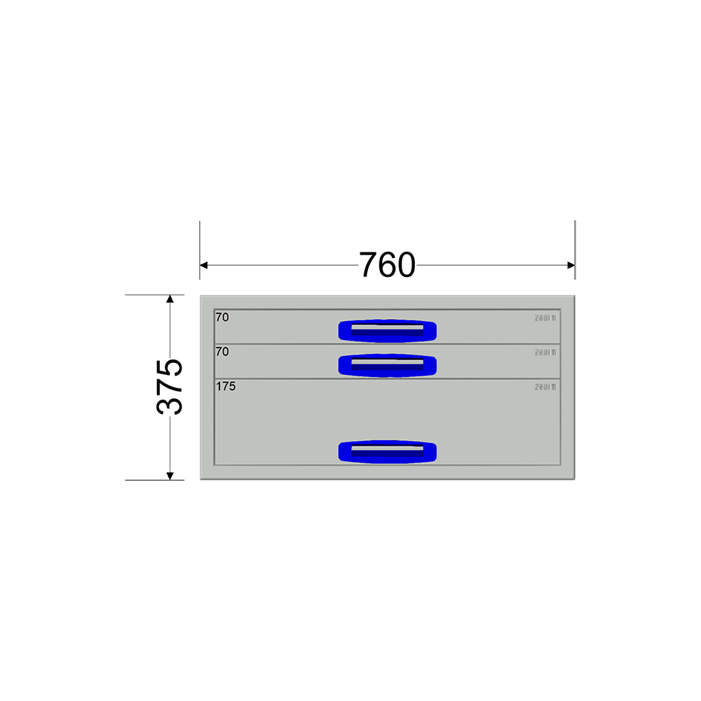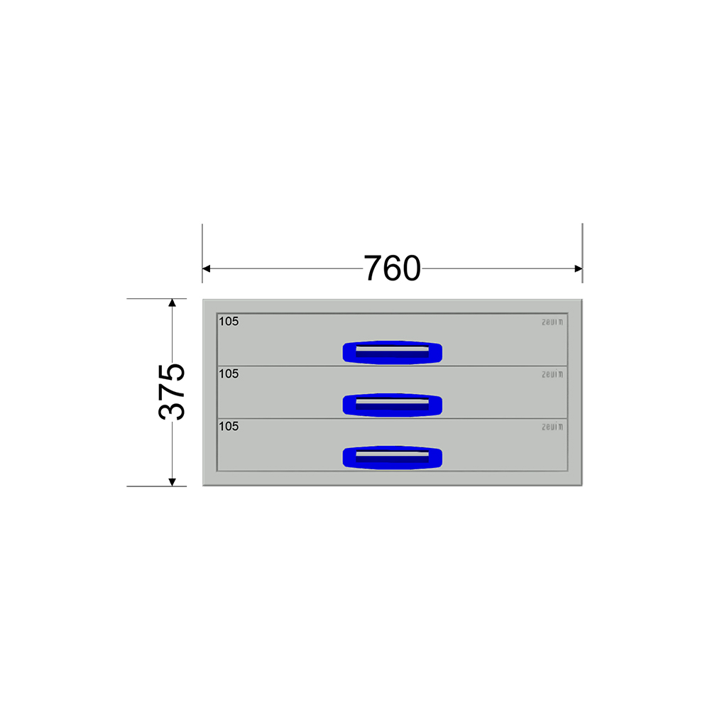 Ladekast – Breedte 0760 mm – Hoogte 375 mm – Diepte 360 mm – 3 laden